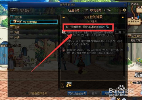 首先,点击右上角的“GBL教的神殿”任务打开任务栏