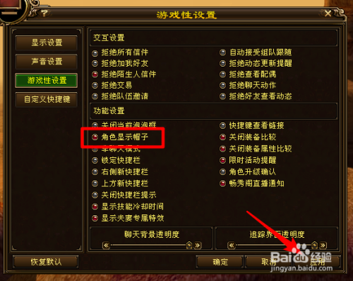 单击选中【角色显示帽子】,点【应用】退出设置即可。