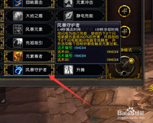 终极天赋,我们选择风暴守护者,这样我们的闪电箭,闪电链都得以加强,对于我们的dps有巨大提升。
