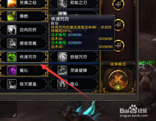 我们下面选择快速咒符,对于我们T最主要的一个技能,咒符可以很好的帮助我们拉仇恨,或者是造成伤害,这个天赋就非常完美。
