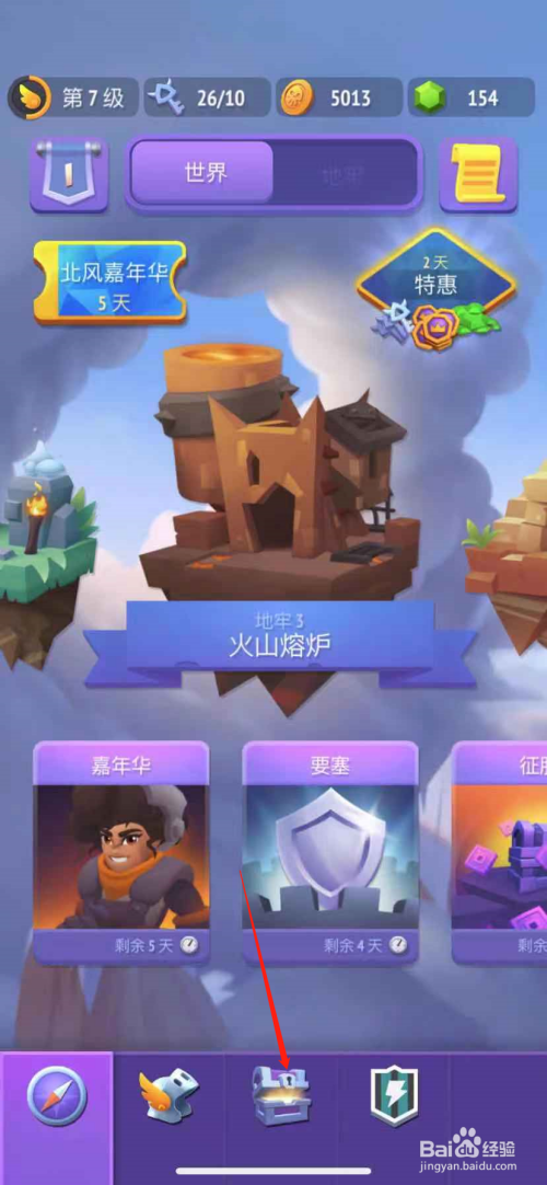 第二步,进入游戏之后,点击下方的“箱子图案”,如下图所示。