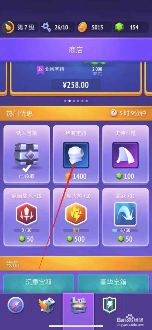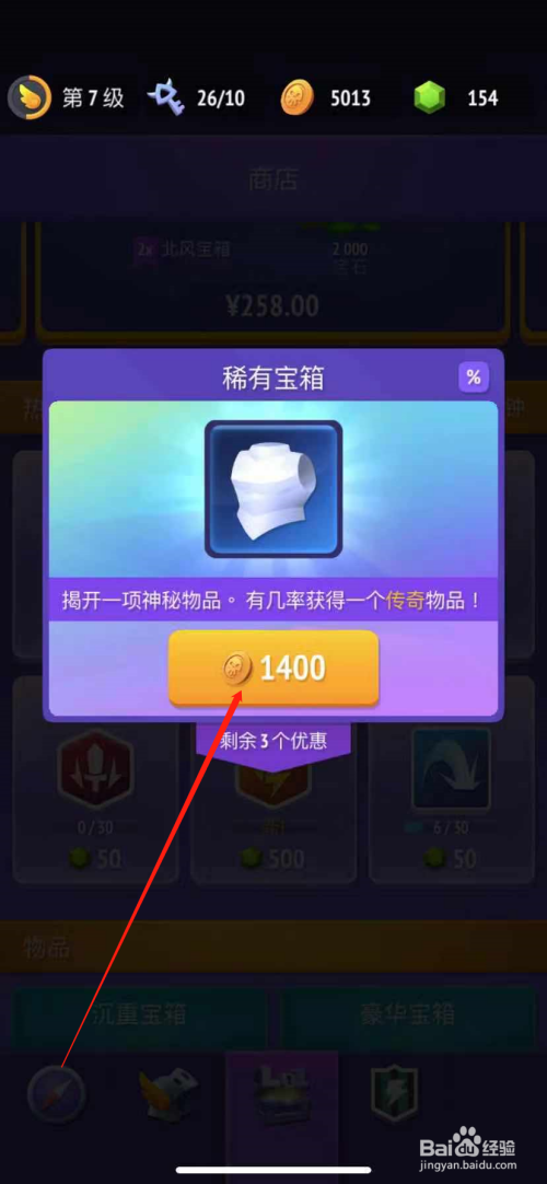 第四步,点击稀有箱子之后,需要花费1400金币购买,如下图所示。