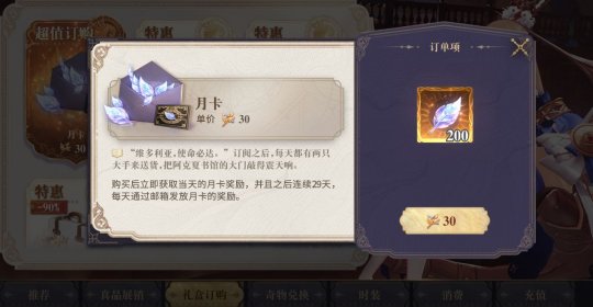 无论你是平民玩家还是氪金大佬,月卡都是非常建议氪一下的!30块购买,时效30天,每天只需1块钱,就能领到200传世玉叶!总共算下来可以领到6000玉叶,这个价格怎么能够让人不心动呢》每天给到的200玉叶完全能够支撑起玩家们日常的使用,这让我们游戏过程中可以更加顺利!