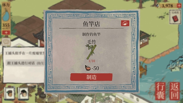 2、收获毛竹后可以去鱼竿店制作钓鱼竿了,一次制作有5个钓鱼竿。