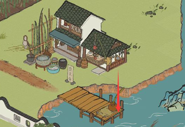 3、拿到钓鱼竿后,在旁边的捕鱼码头钓鱼。