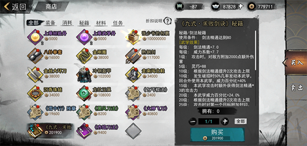 而在行踪莫测的神秘商人处,大侠们也能购买众多暗金秘籍。只不过价格高昂,大侠们需要提前准备好铜币哦~