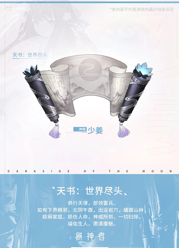 少姜解放天书之力,展开天书结界笼罩住战场,禁锢结界内所有敌人并持续对结界内的每个敌人造成650%源初伤害,同时少姜会获取6个天书印记。