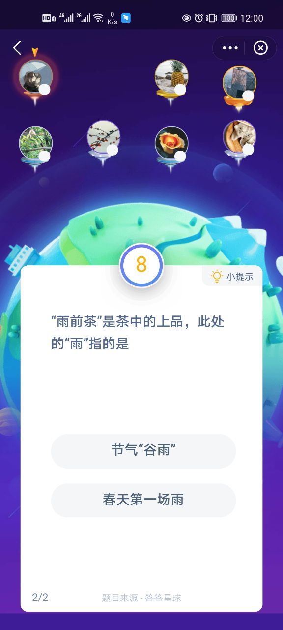 雨前茶的雨是什么意思?我国的茶文化是自古以来就是比较有名气的,茶的种类也是多不胜数的,其中“雨前茶是一类大家都比较喜欢的茶,这类茶清香、味道好被很多人喜欢。那么大家知道雨前茶中的雨是代表什么?下面小编就为大家介绍一下蚂蚁庄园1月12日关于雨前茶的这道题目的正确答案分析,希望大家能够喜欢哦。