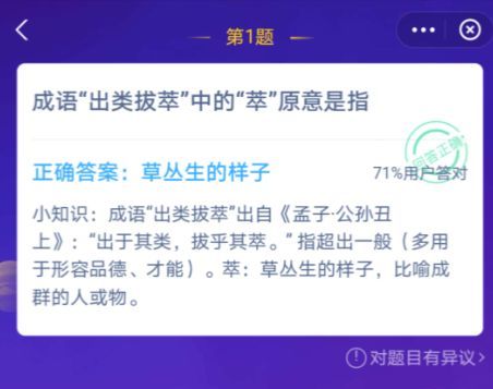 答案解析:成语“出类拔萃"出自《孟子·公孙丑上》:“出于其类,拔乎其萃。"指超出一般(多用于形容品德、才能)。萃;草丛生的样子,比喻成群的人或物。