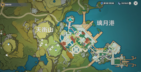 首先传送到璃月港上部,然后按照下图所示的路线走