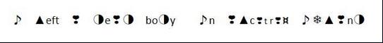 所以上心下圆符号(1,3,1)为A,类音符符号(1,1,1)为l,实心三角字符(1,2,1)为L,类圆四角(1,7,8)为Z。