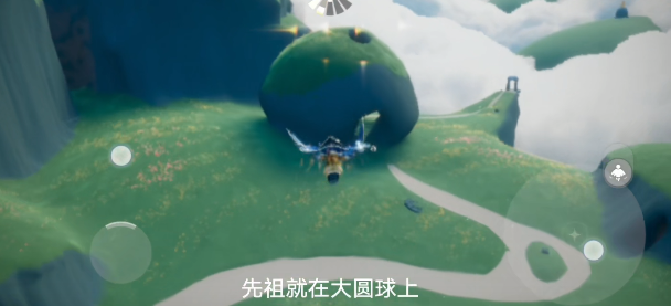 2、先祖就在一个大圆球上面,停下来可以看见小黑点就是先祖了。