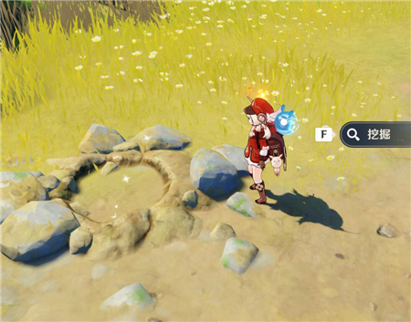 在2月14日的玲珑霄灯图之二任务中都遇到了这个问题,如下图所示,明明到达了地图中间所指示的地点,但是却没有出现挖掘的交互键。