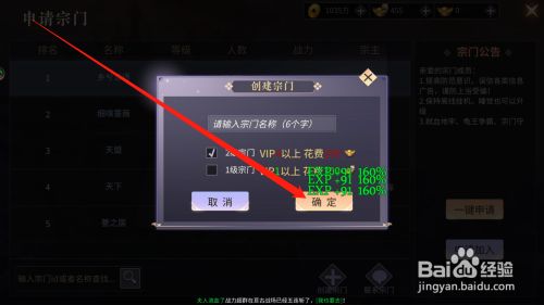 输入宗门名称,点击确定按钮,就可以成功创建宗门了