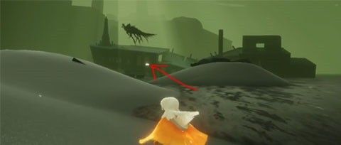 进去之后玩家可以看到一个沉船,然后如图所示,需要玩家进入到这个船的前面的船舱里面去。