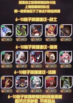 主力队非主升圣物职业英雄,体力消耗后更换合理阵容。