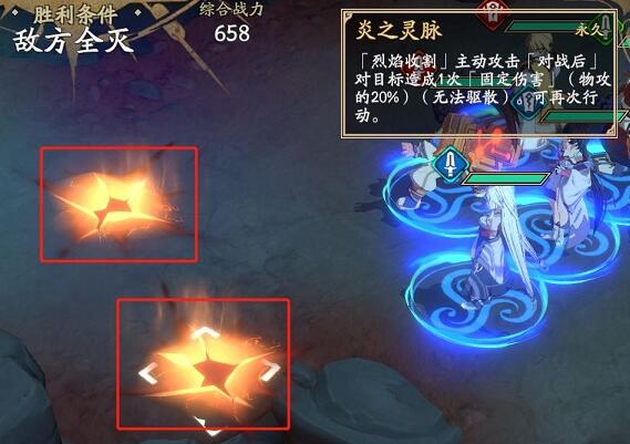 打法技巧:尽量选择物攻高的英雄吃掉机关,这样可以有效发挥灵脉BUFF的效能。