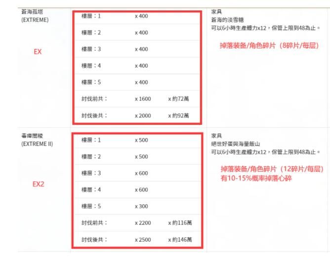所以,通关EX2之后,即使没有时间也可以打前四层,收益高于EX整体收益。