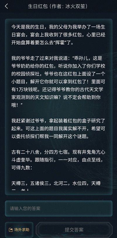 生日红包侦探委托题目介绍: