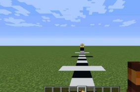 接着在图示位置放置一个普通方块,并在上面摆放红石粉和红石火把。