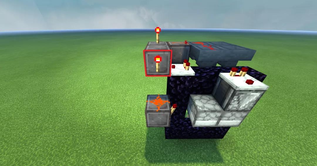一开始我们先搭建最简单的规格为4*5的下界传送门,在划红线区域摆放一个侦测方向朝下的侦测器。
