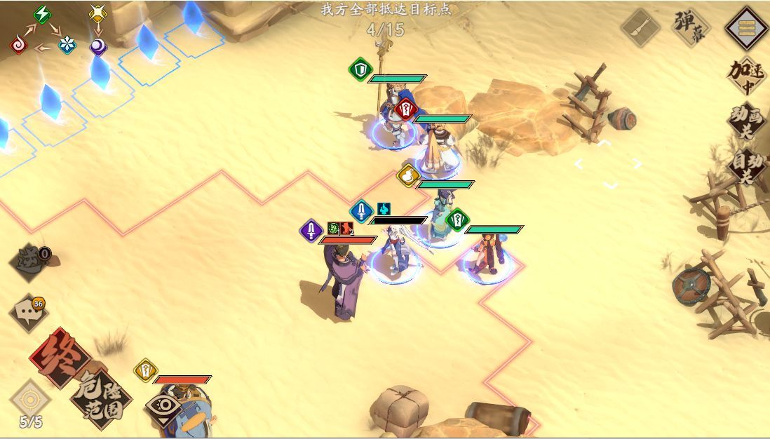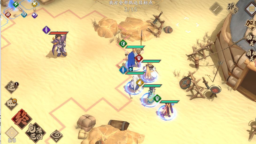 第五回合,大家继续向前逃窜,占一下坑位,确保没有人在攻击范围。例如这种布局。