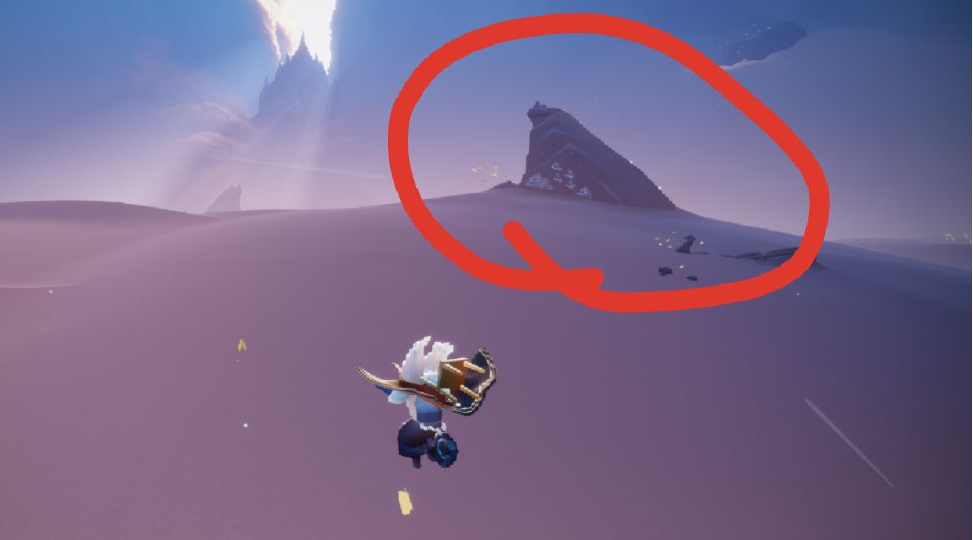 前往方法:首先从遇境进入霞谷地图,选择滑行赛道。然后在滑行赛道第一个图的中间,下图位置往上飞,飞到圈出位置就可以看到日出云海了。