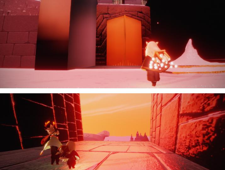 前往方法:首先从遇境进入霞谷地图,其次在霞谷赛道终点(竞技场)没有小金人的一侧,找到更新后的双子大门(如下图),最后在大门的上方遁地就可进入这个房间。