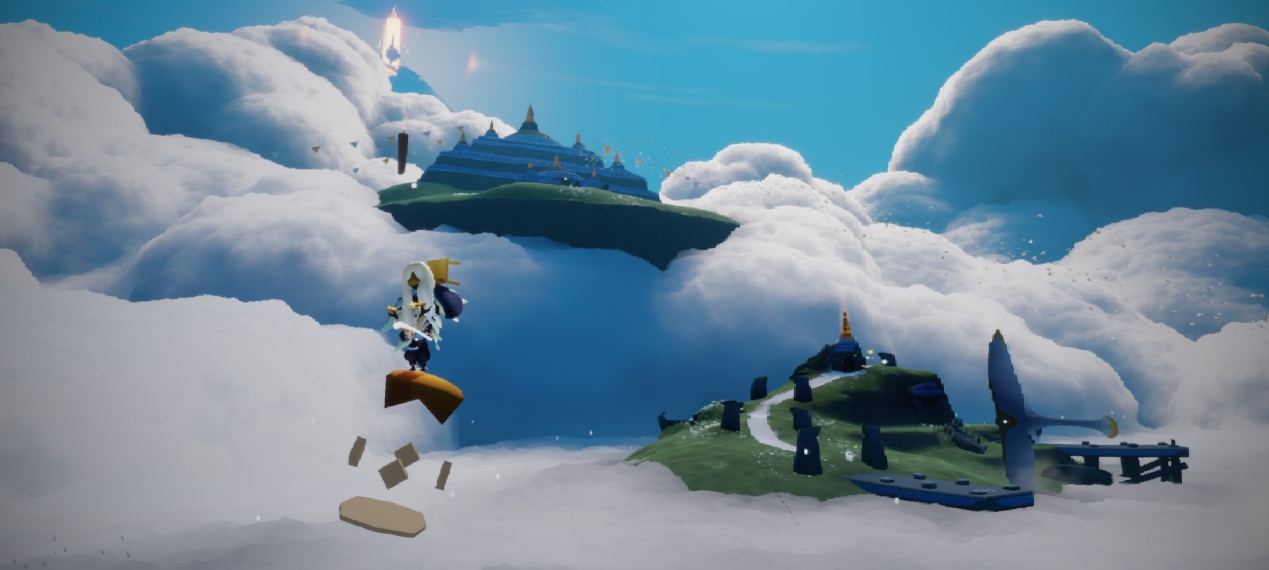 前往方法:首先从遇境进入伊甸地图后,然后找到在入口处左边的柱子(如下图所示位置)再使用双人背背向上飞,就可以看到这个小月球了。