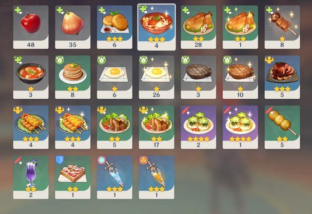 不过从食物上的这些小细节上来看,官方还真是下了一番功夫,不过玩家在平时制作食物的时候要选择一些实用的食物,特别是加攻击和暴击的可以多做一点,恢复类的最好别做,因为在做任务的时候就能获得很多,而且游戏当中是有奶妈存在的,所以基本上不打boos的话用不上食物恢复,然后玩家们有香菱的话,可以用她来首选制作,因为香菱的天赋是在做食物的时候能有一些几率获得双倍的产出,运气好的话食物基本上是吃不完的!