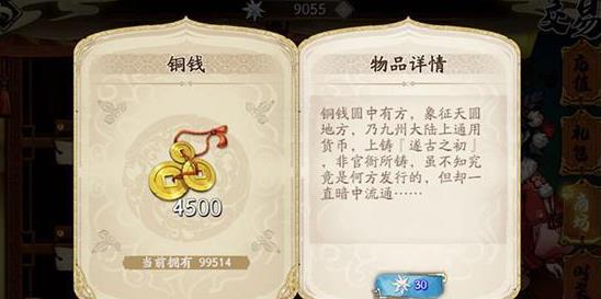 今天发现一个不用钻能获得大量铜钱的办法!那就是用声望换,7000声望只能换1个石头,但是能换8万7千500铜钱。在开荒期非常值得。