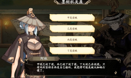 天地劫墨矩机关屋谁是窃贼正确答案是什么呢?甲乙丙丁四人中谁才是偷东西的那个人呢?虽然丙一直都在说是自己偷的,但是他没有时间也没有机会,那么,为什么丙要一直坚持说是自己偷的?真正偷东西的哪个人又是谁呢?下面就以上问题小编将会为大家带来最强的思路分析!
