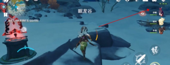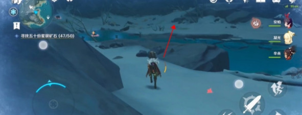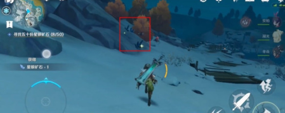 玩家传送到眠龙谷对面的传送点后,朝着进入雪葬之都·近郊的山路走,可以在一块深赤之石后面找到一处有矿点,全收下大概可以获得5块以上的星银矿石!