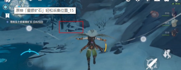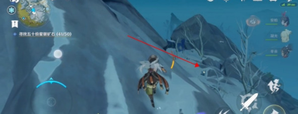 玩家传送到雪葬之都·近郊比较下面的那个传送点后,往左边方向走找到有水晶簇的山洞,洞口处就有一处矿点,全收下能拿到3块左右;再往洞里走还有两块矿石,可以再拿到2块星银矿石!