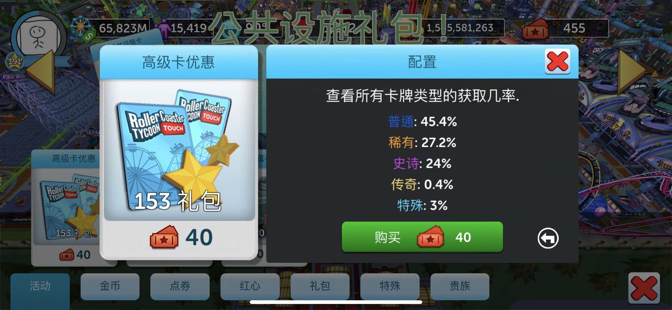 2.少花冤枉钱.不要硬怼传奇卡.把没用的装饰或者过山车部件兑换成高级卡即可
