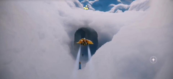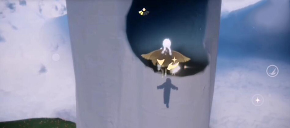 绕一圈后来到这个位置,可以看到对面石壁上有个小洞,飞过去里面有个光之翼