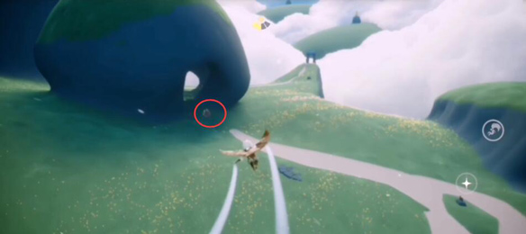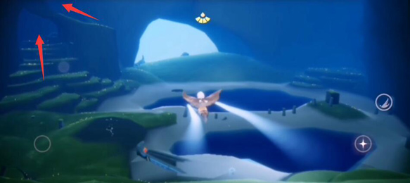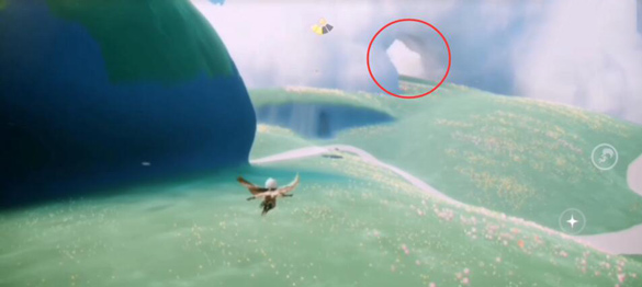 视角往上,可以看到这里有一个石洞,飞上去可以获得一个光之翼