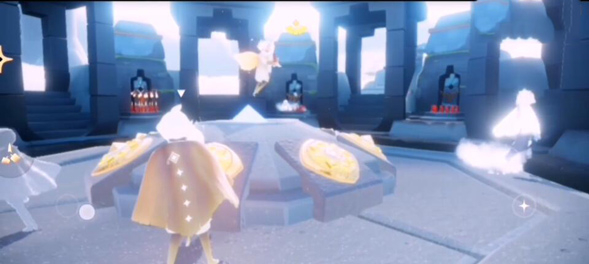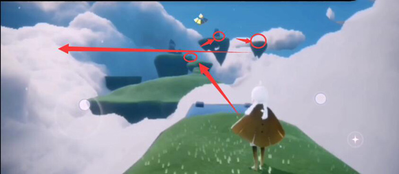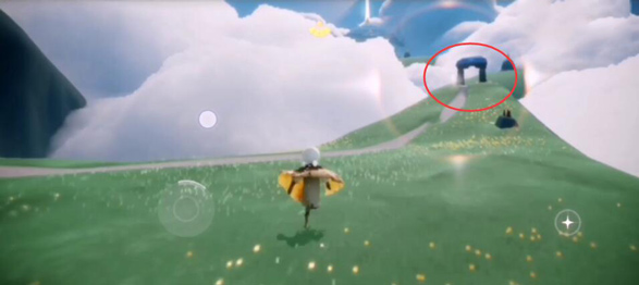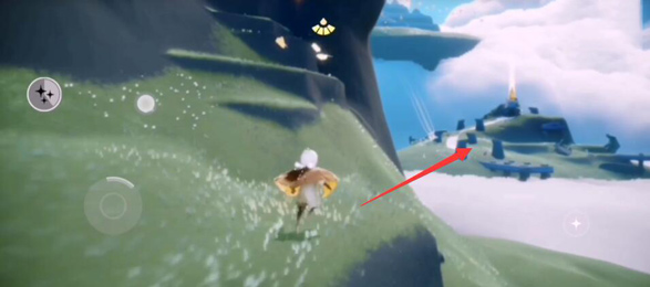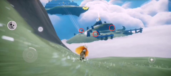 在石阵后面有个石柱,站在石柱往上跳大概3个飞行高度的位置有一个光之翼