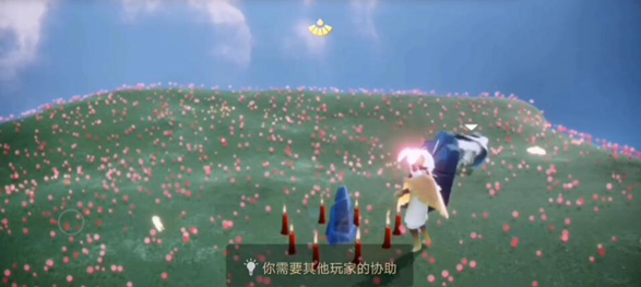 需要先到下面,点亮三座岛上的三个金色塔的蜡烛,召唤飞行动物
