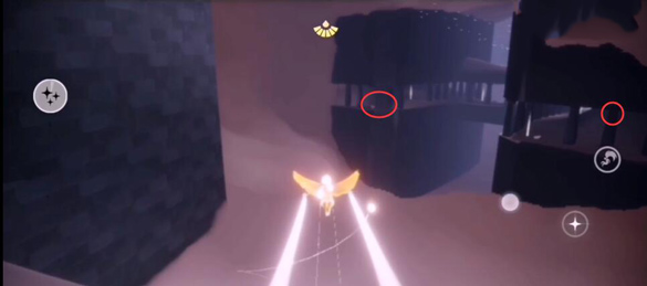 来到这里后要注意,图中标记2个地方有一个先祖★和一个光之翼