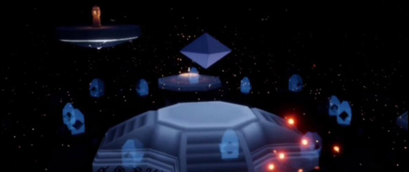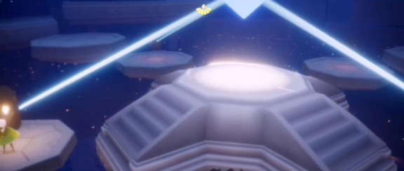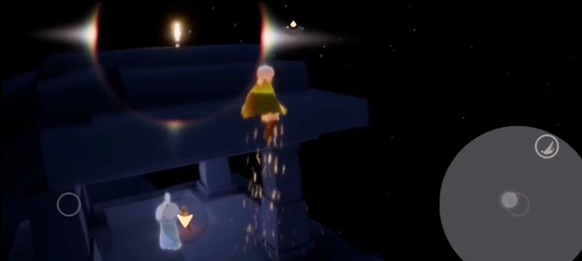 来到第四层后,找到这个平台飞过去,这个平台上有一道光,可以把我们送到半空中