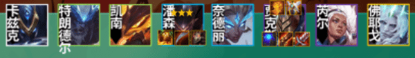 阵容的后期主要是挂强势单卡诺手,还能多一个减伤的骑士羁绊,诺手的减护甲70%也非常的重要。如果说对面是飞升天使这种前排贾克斯切不动的阵容,其实反克制办法一个是让贾克斯打的动,比如挂穿甲弓,另外就是挂皎月4屠和佛耶戈去切后面,死掉的天使才是好天使。