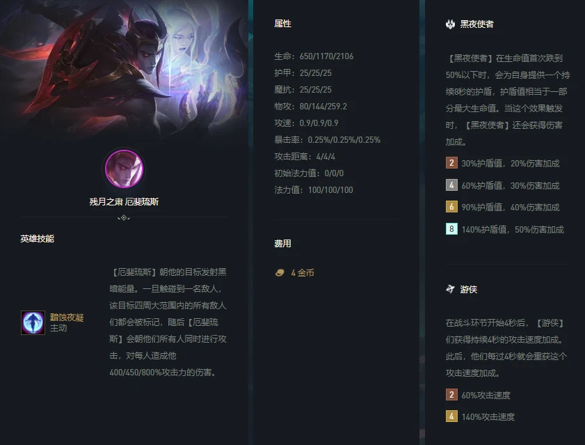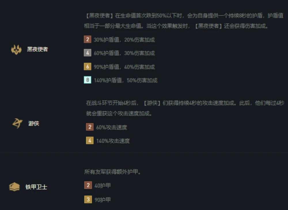云顶之弈S5赛季已经正式开启了,目前游侠阵容还是非常受大家的欢迎的,黑夜游侠阵容主要利用4黑夜羁绊增加高额护盾,增强坦度,下面小编就为大家介绍一下S5黑夜游侠阵容攻略,希望大家喜欢。