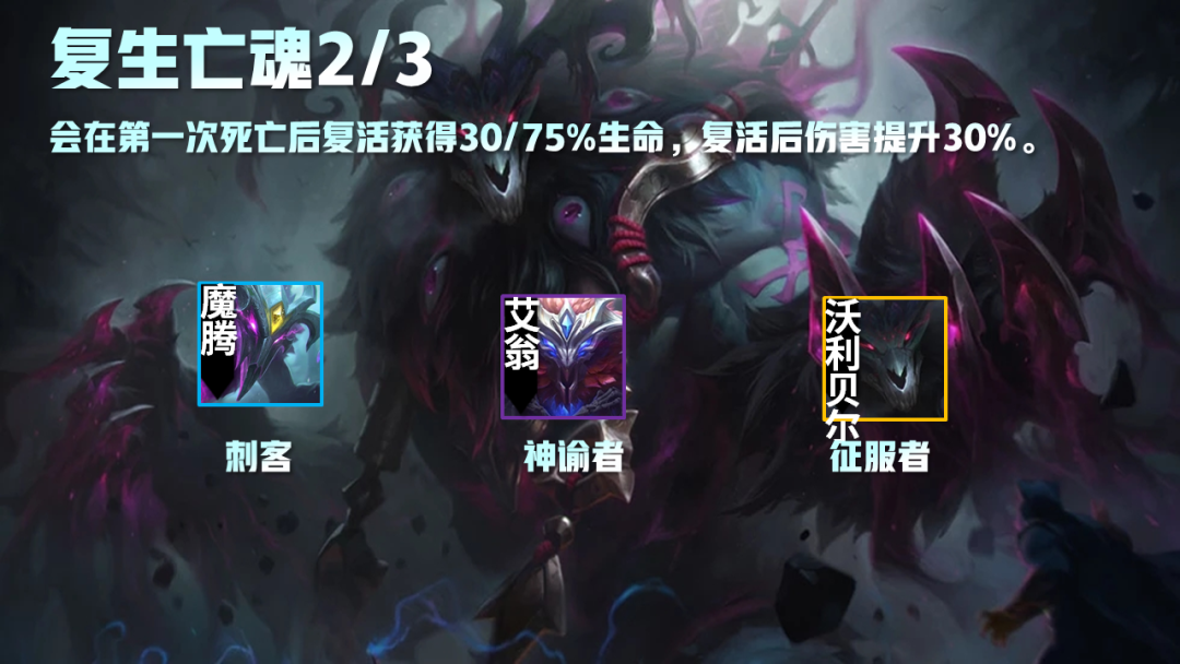 每个回合,【复生亡魂】会在死亡后复活一次,回复一定生命值。复活后,他们会造成并受到30%额外伤害。