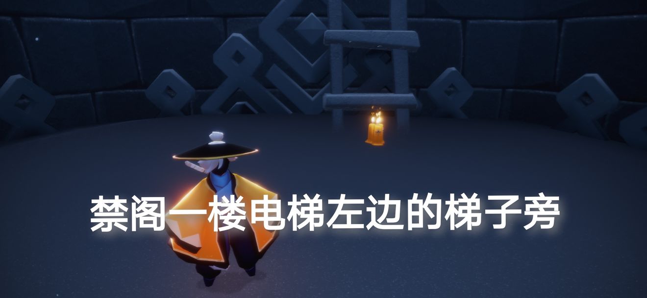 禁阁一楼电梯左边的梯子旁