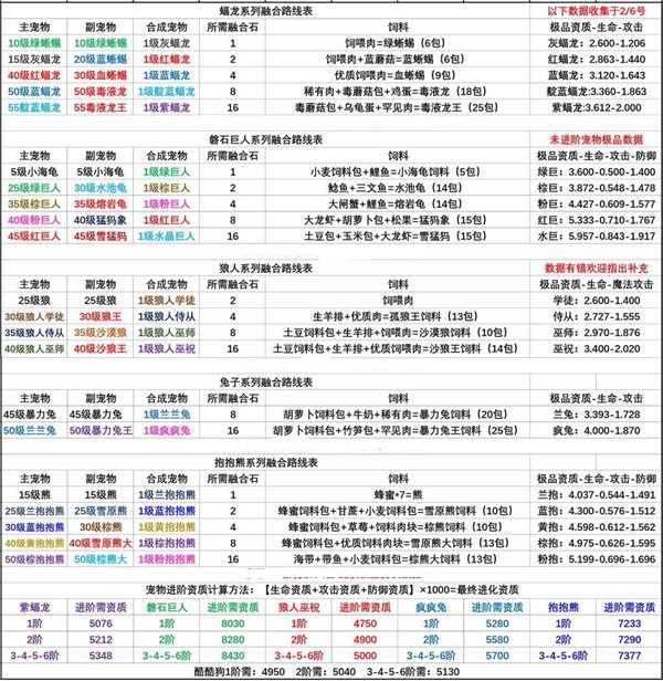 ※宠物合成路线持续补充中。如果小伙伴们有所补充,欢迎在评论中留言,小编会第一时间补充进去的哟