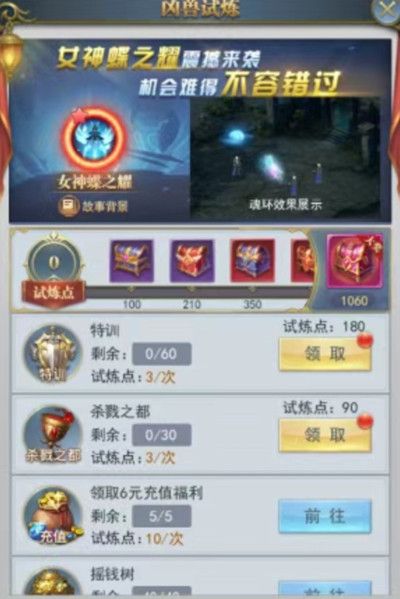 三.凶兽试炼(主要奖励:女神蝶纪念魂环礼包、魂核神弩礼包等)