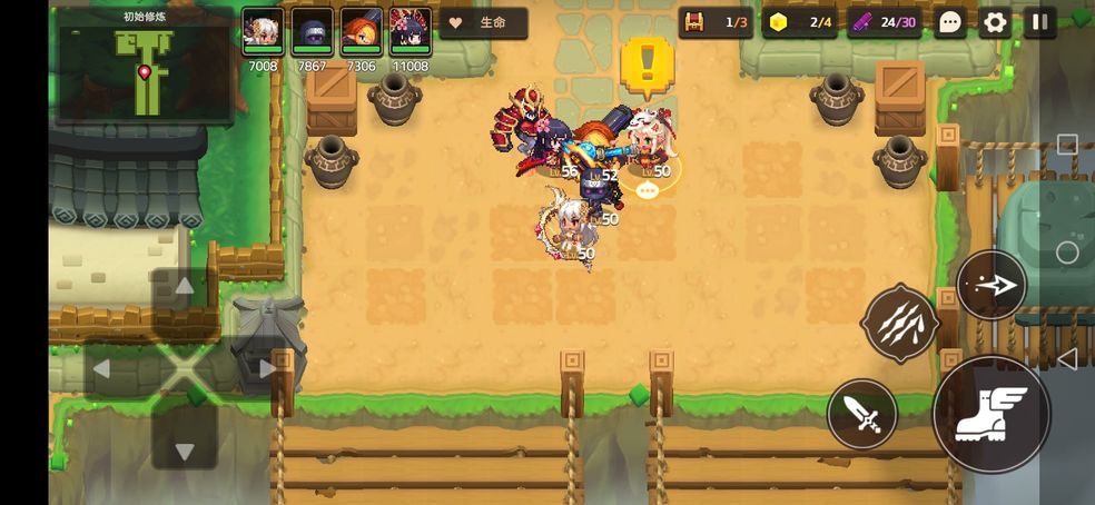 1、首先就是使用凤凰的打法,直接用自带武器剑气扫一下木桩子就全碎了,然后只要有路不失误就能过,并不是很难。