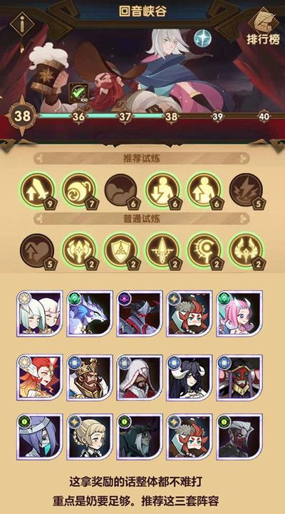 剑与远征回音峡谷打法阵容: