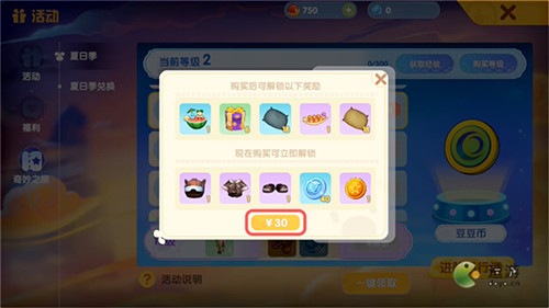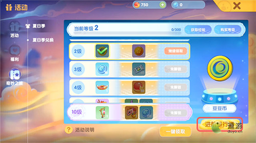 在奇妙之旅“夏日季”页面的右下角可以看到这个“进阶通行证”,需要氪金;